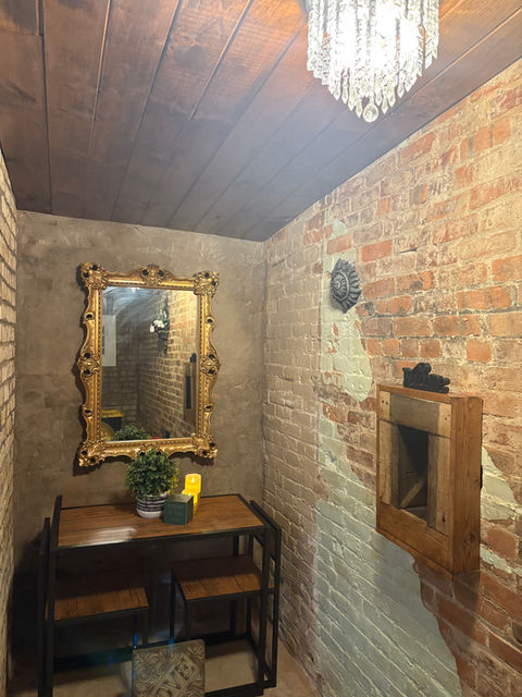 This intimate and serene bridal retreat is designed for a bride and her closest companions to relax, prepare, and soak in every special moment together. Thoughtfully curated with charm and elegance, the space features refinished antique black vanities, a stunning chandelier, and a vintage gold mirror paired with a matching stool - perfect for those quiet, reflective moments. The deep, dramatic tones of the furniture create a striking contrast that makes a white wedding dress truly stand out. With its blend of comfort, character, and timeless style, this quaint space offers a peaceful and picture-perfect start to a wonderful wedding celebration.